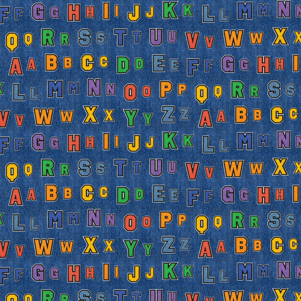 Blue Patch Perfect Alphabet Rows Cotton 43"/44" Fabric Per Yard
