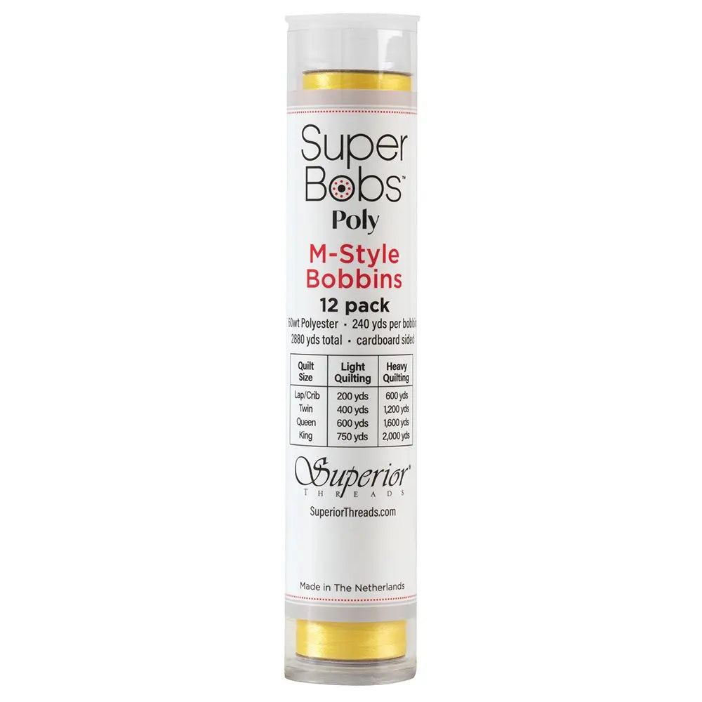 The Super Bobs Poly Bobbins Collection at Linda's offers pre-wound bobbins made from high-quality polyester thread, perfect for quilters and sewists seeking convenience and precision. Known for their consistent tension and smooth operation, these bobbins help achieve professional-quality stitches every time. The Super Bobs are compatible with most sewing and quilting machines, making them an essential addition to your sewing toolkit. Whether you're working on intricate quilting designs or simple sewing projects, the Super Bobs Poly Bobbins will ensure flawless results. Explore this collection to streamline your sewing experience with reliable, pre-wound bobbins!