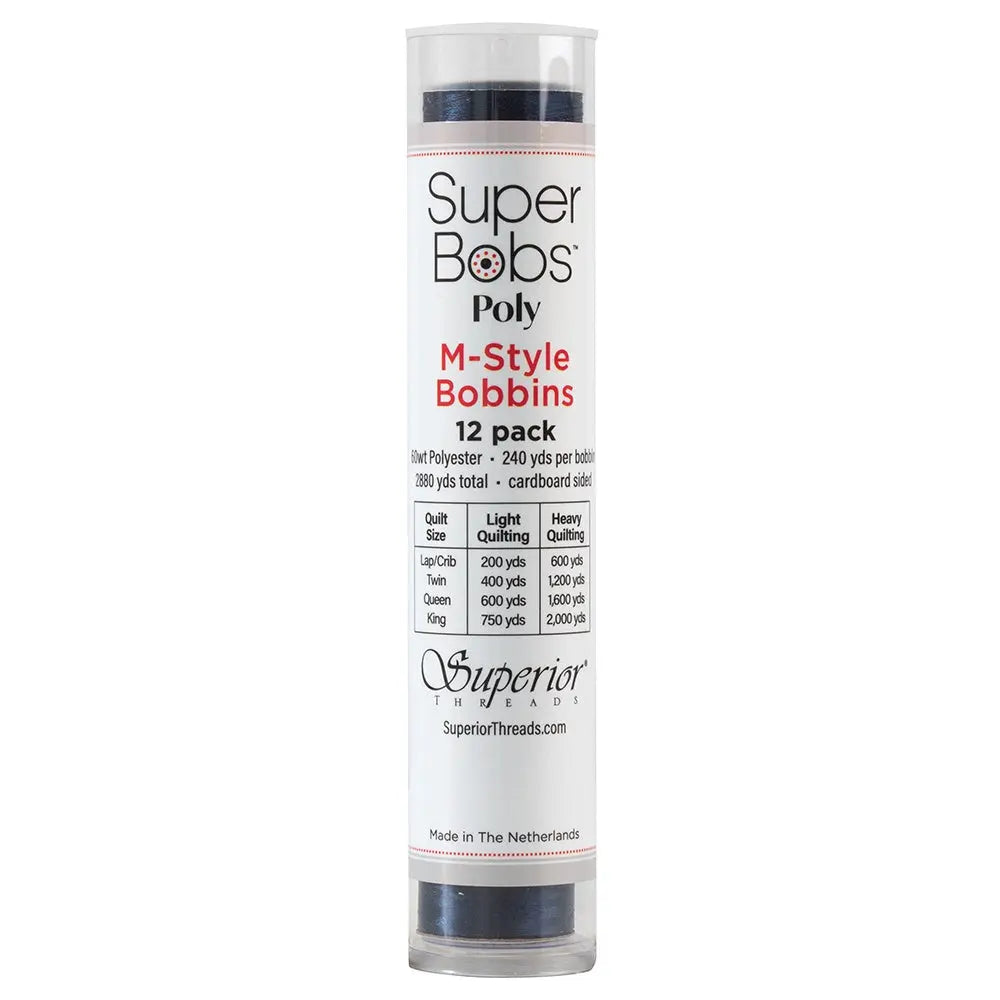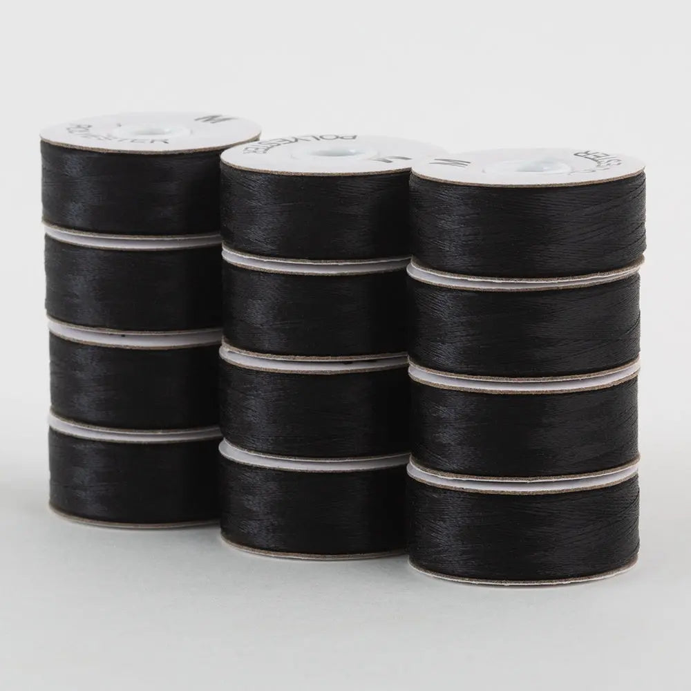 Super Bobs Poly #625 Black (M-Style) 12 pack pre-wound bobbins