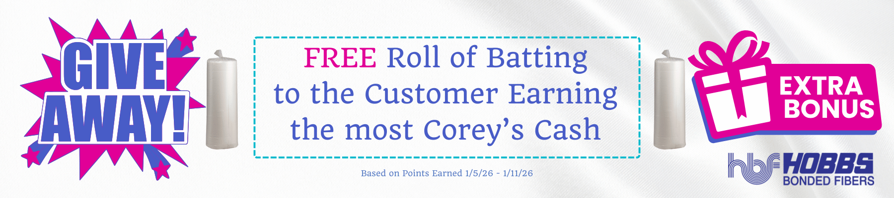 BOGO Buy 3 Hobbs or Linda’s Batting Packages, get 1 Free