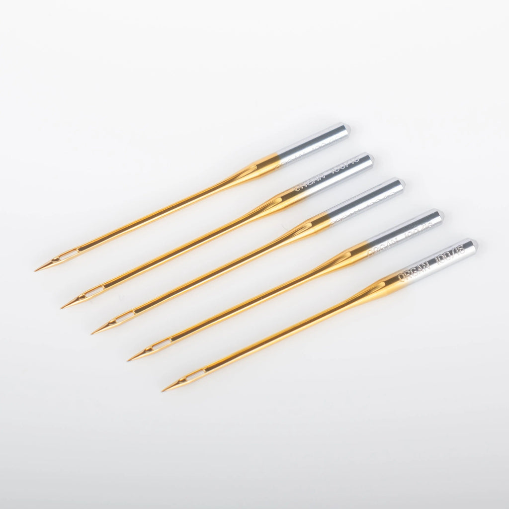 The titanium nitride coating is less than 5 microns thick and adds no bulk to the needle. To put this into perspective, the average human hair is 70 microns thick. It is a tough material that provides magnificent durability and wear resistance, protecting the point of your needle and keeping it sharper for longer. A needle with this coating has an abrasion and wear resistance over twice as much as chromium-plated needles and four times as much as standard nickel-plated needles. Our topstitch needles will last over five times longer than standard nickel-plated needles – it’s the best bang for your buck!