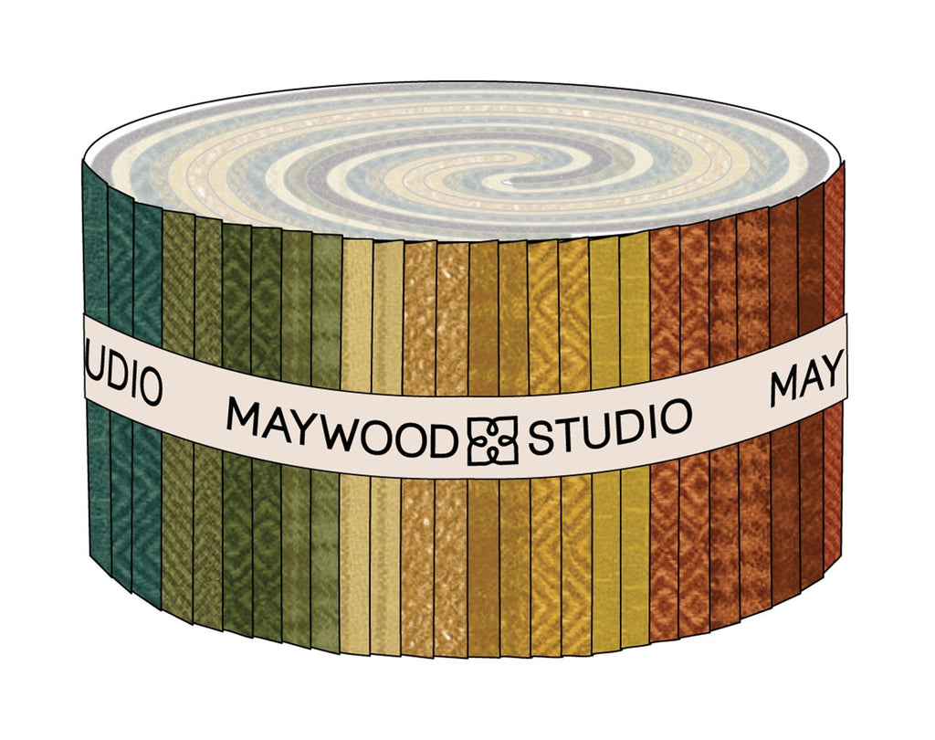 This product features a bundle of 2.5-inch strips of 100% cotton flannel, perfect for quilting and crafting projects. The bundle showcases a vibrant array of colors, from deep greens to rich oranges, with intricate patterns that evoke a desert sunset theme. The strips are neatly rolled, providing an organized and visually appealing presentation, ideal for both professional and home crafters looking to add a touch of warmth and texture to their creations.
