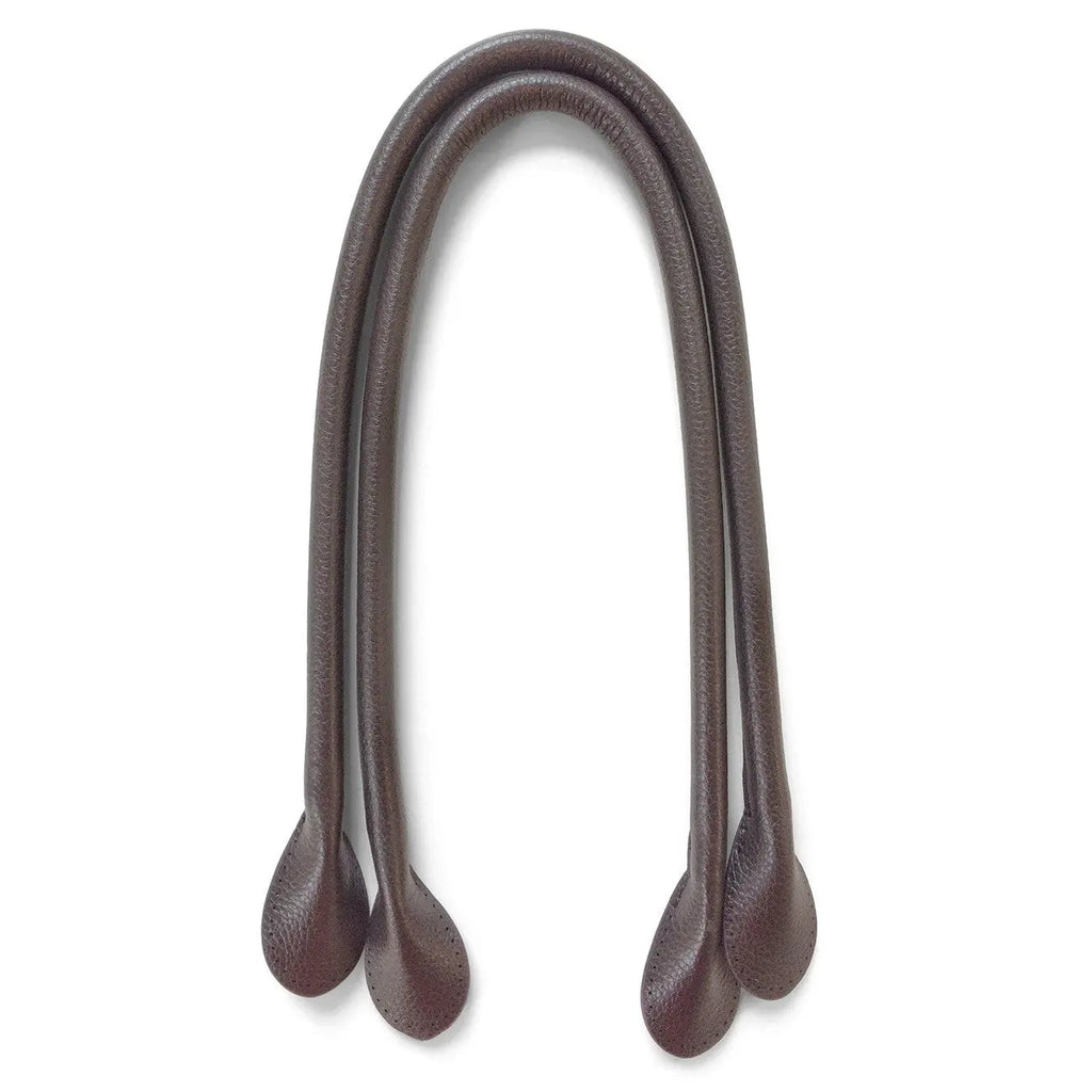 25in long faux leather handles in dark brown. Includes pre-punched holes for easy installation. These handles were designed to coordinate with quilted bag projects using Japanese yarn-dyed fabrics but they'll work great with other patterns as well.