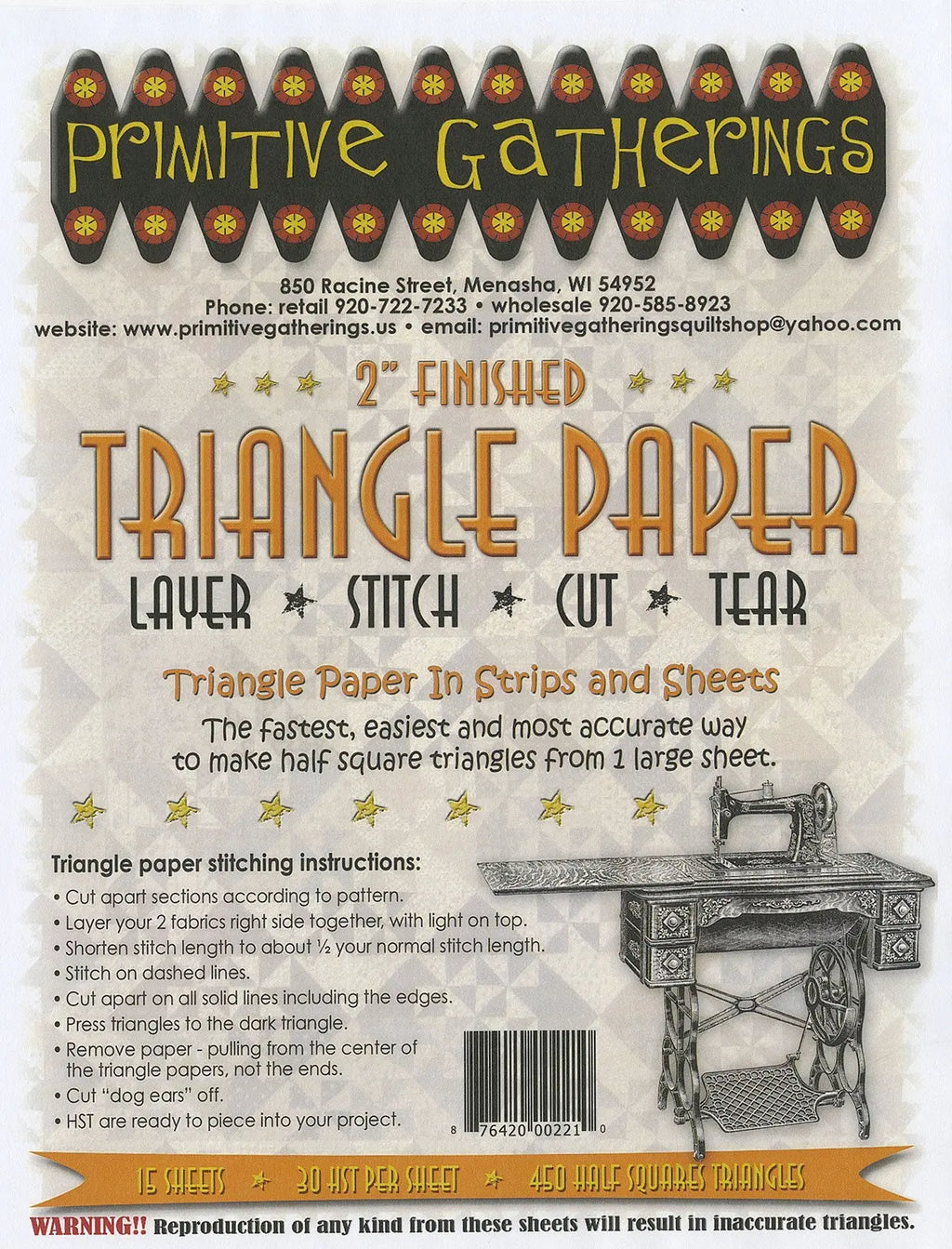 Triangle paper in strips and sheets. This is the fastest, easiest and most accurate way to make half square triangles. In this package there are 15 sheets with 30 Half Square Triangles per sheet, and will make a total of 450 Half Square Triangles.