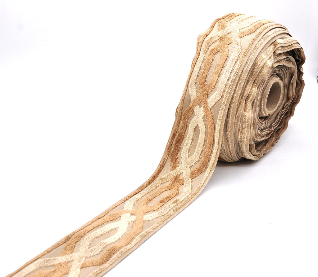 Decorative Chenille Trim Tape - 3 1/2" Width (25 Yard Roll) - BR-7524-28/16 Beige/Taupe