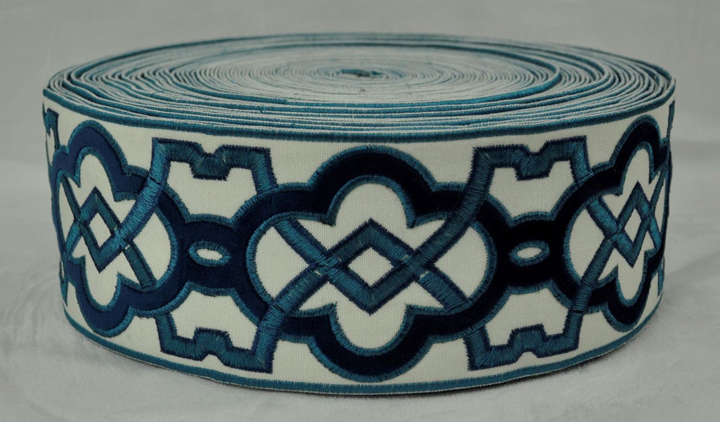 Velvet Embossed Decorative Trim Tape - 3 1/2" Width (25 Yard Roll) - BR-7337-05 Navy/Beige