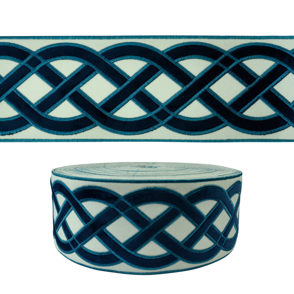 Velvet Embossed Decorative Trim Tape - 3 3/4" Width (25 Yard Roll) - BR-7526-05 Navy Blue/Beige