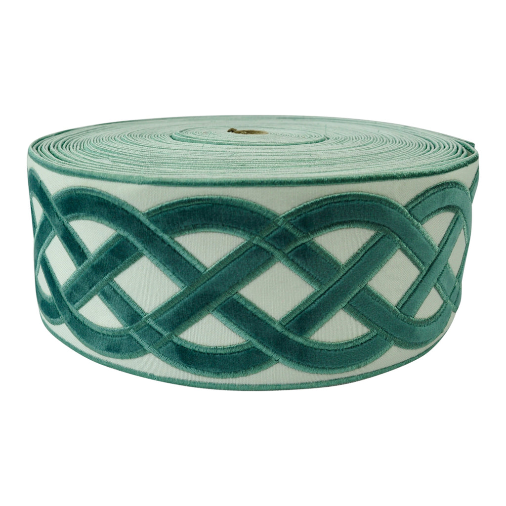Velvet Embossed Decorative Trim Tape - 3 3/4" Width (25 Yard Roll) - BR-7526-33 Turquoise/Beige