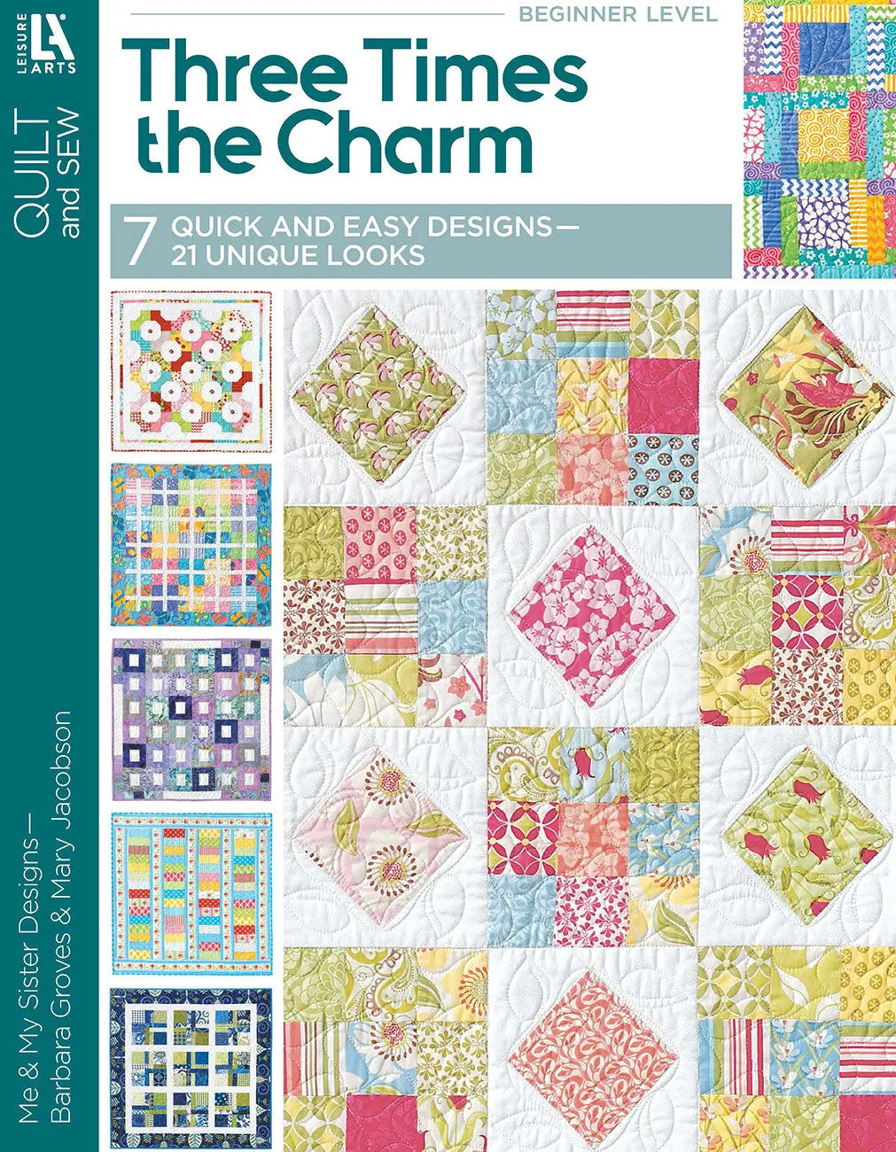 Three Times the Charm uses precut charm packs of 5in squares to make quick and easy little quilts for home decor and baby blankets. The seven quilt patterns were each sewn three times using different fabric collections, for a total of 21 quilts to help the quilter visualize her quilt in the charm pack she chooses. The piecing is fast and simple! Perfect for table toppers, wall hangings, and baby shower gifts!