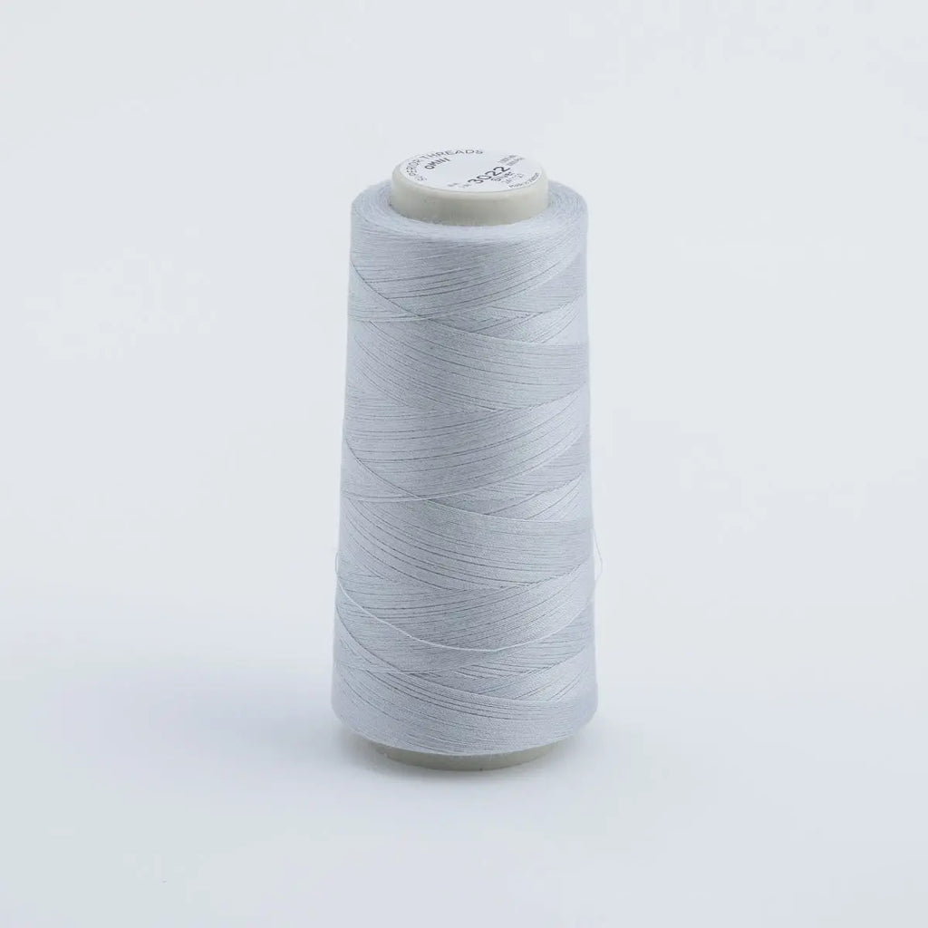 3022 OMNI Silver 2,000 yd. mini cone. 40 weight, 2 ply poly-wrapped poly-core thread available in 30 solid colors. OMNI thread has a subtle matte finish and it's designed to withstand the rigor of high speeds on home sewing or longarm machines. Check out the variegated version, OMNI-V.