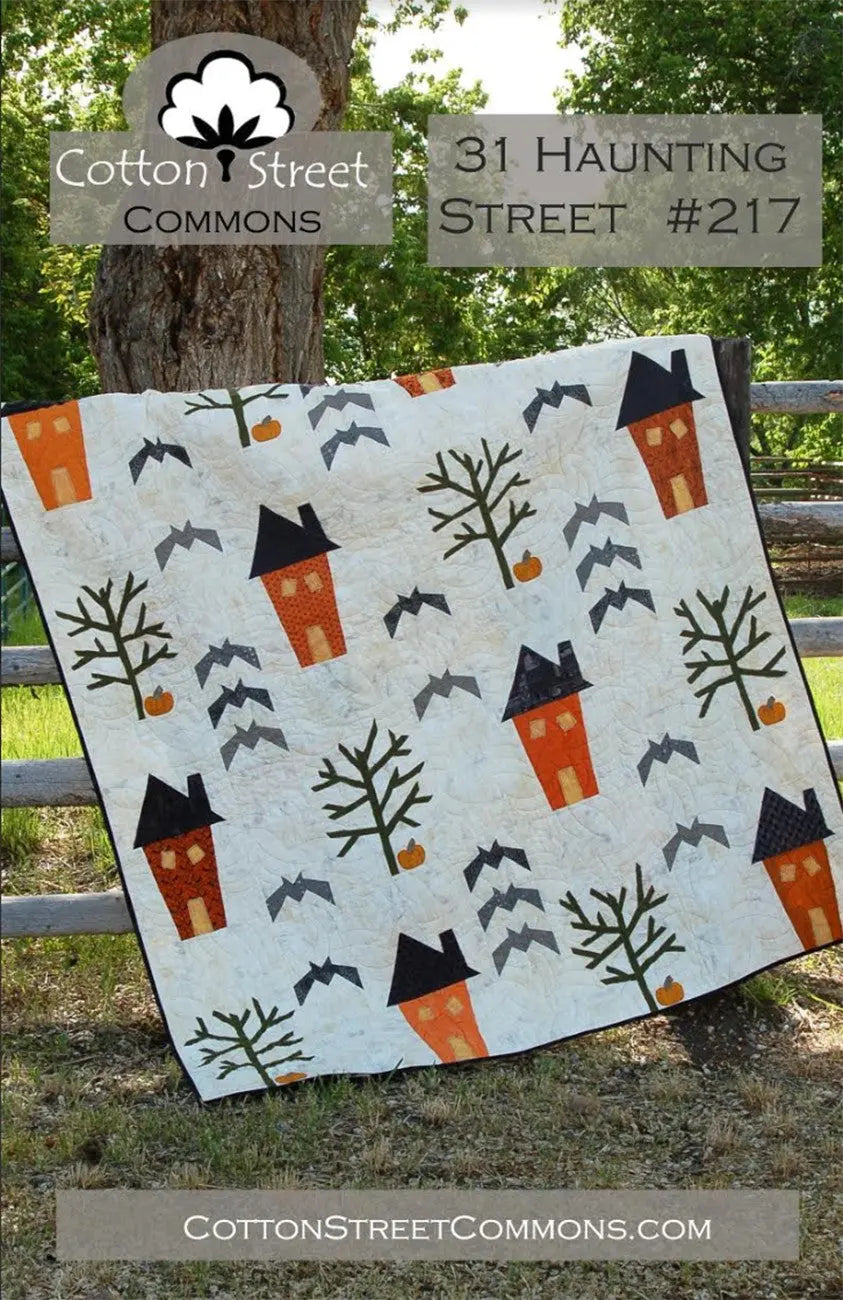 The quilt is 65" x 75". It is a fun quilt that combines piecing and raw edge applique.