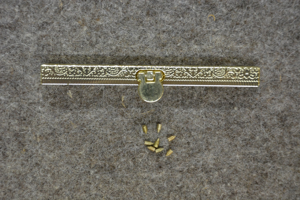 This wallet clasp measures 4-3/8in wide, has a rose gold embossed finish and 8 small phillips head screws to secure it onto your wallet. It's Perfect for Pam Damour's Cell Phone Wallet Pattern, Mini Wallet Pattern and Wonder Wallet patterns as well as the Mini Diva Wallets.