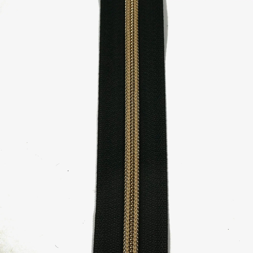 #5 Emmaline Zippers-by-the-Yard 3yds Black Antique Brass Teeth