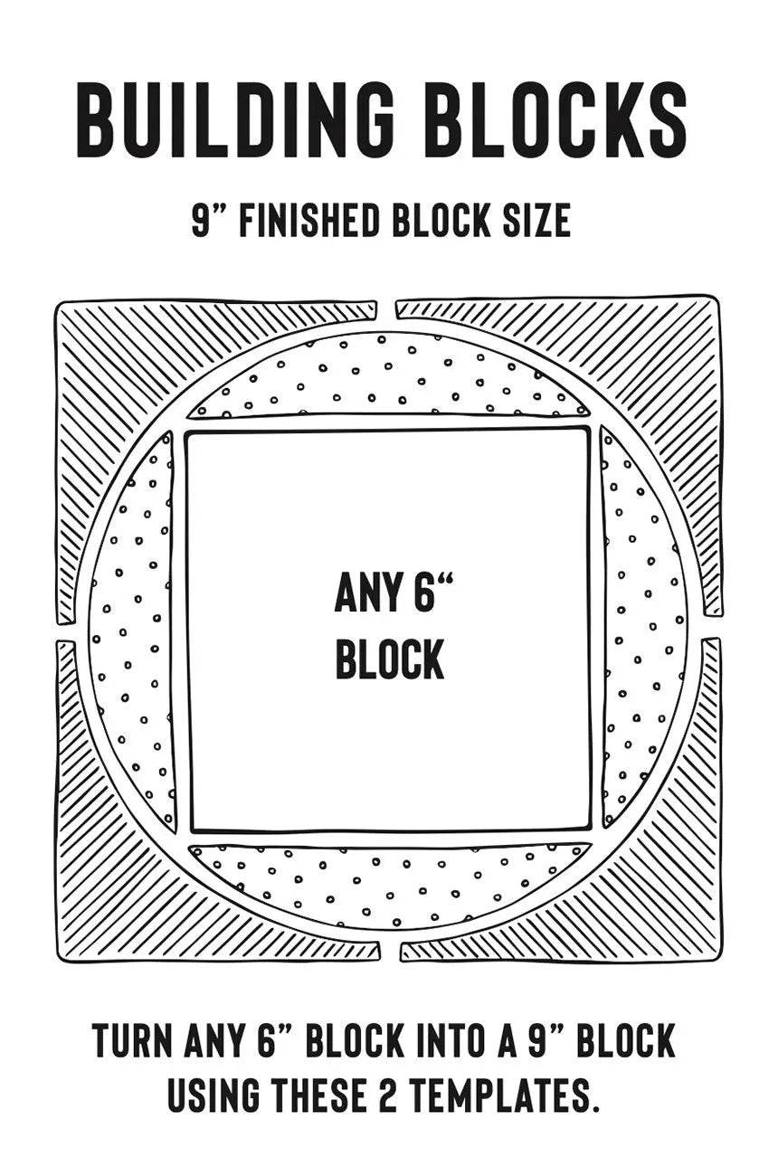 6in Building Blocks - 9in Finished: Are you stuck for inspiration? These 2 handy templates will build your simple 6" block into a gorgeous circle, and increase your overall block size to 9"