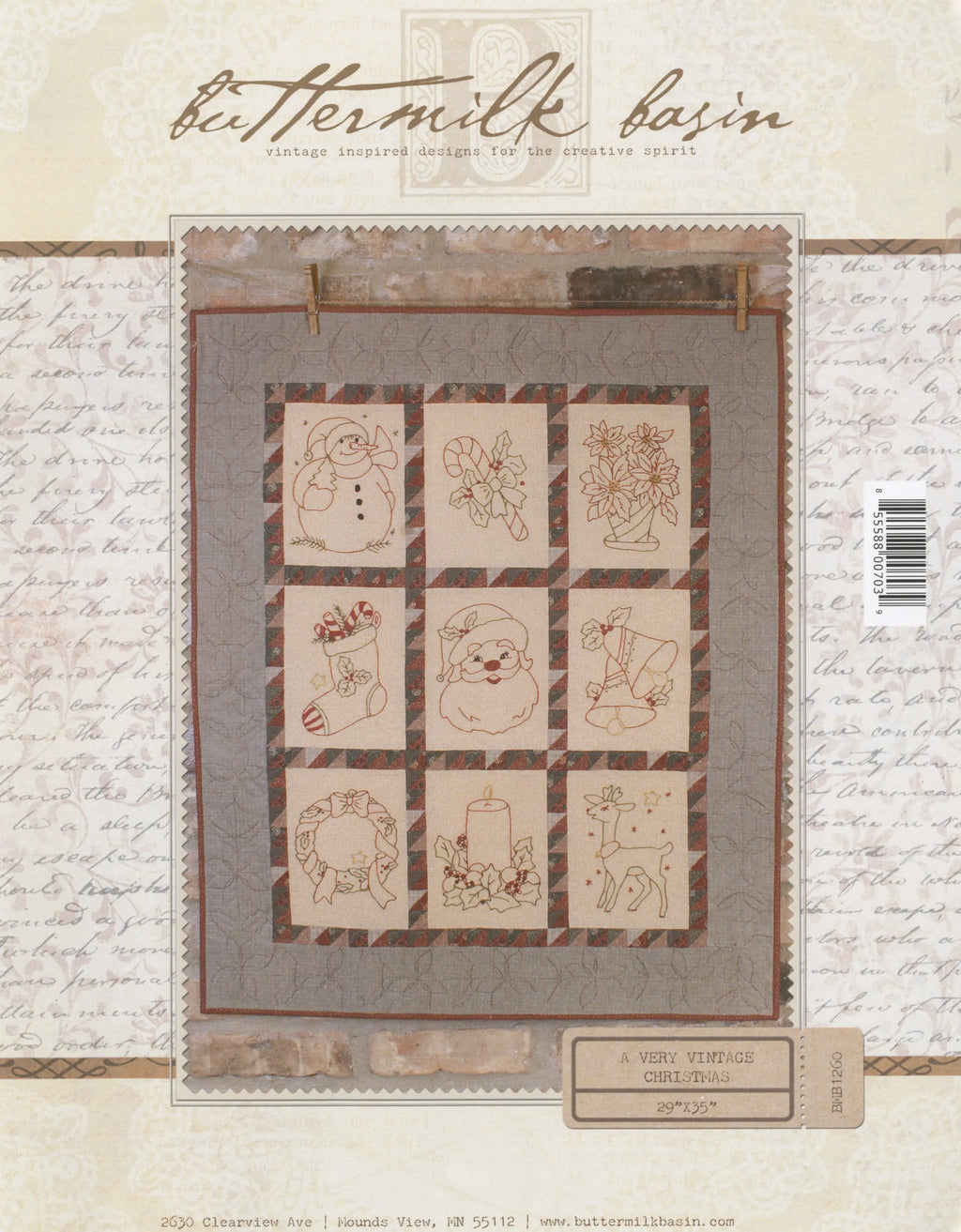 A Very Vintage Christmas is inspired by Christmas' Past! We love the vintage elements it showcases from the poinsettias to the sweet smiling Santa! HO HO HO! The blocks are embroidered on cotton, with a bit of quilting for the perfect setting!