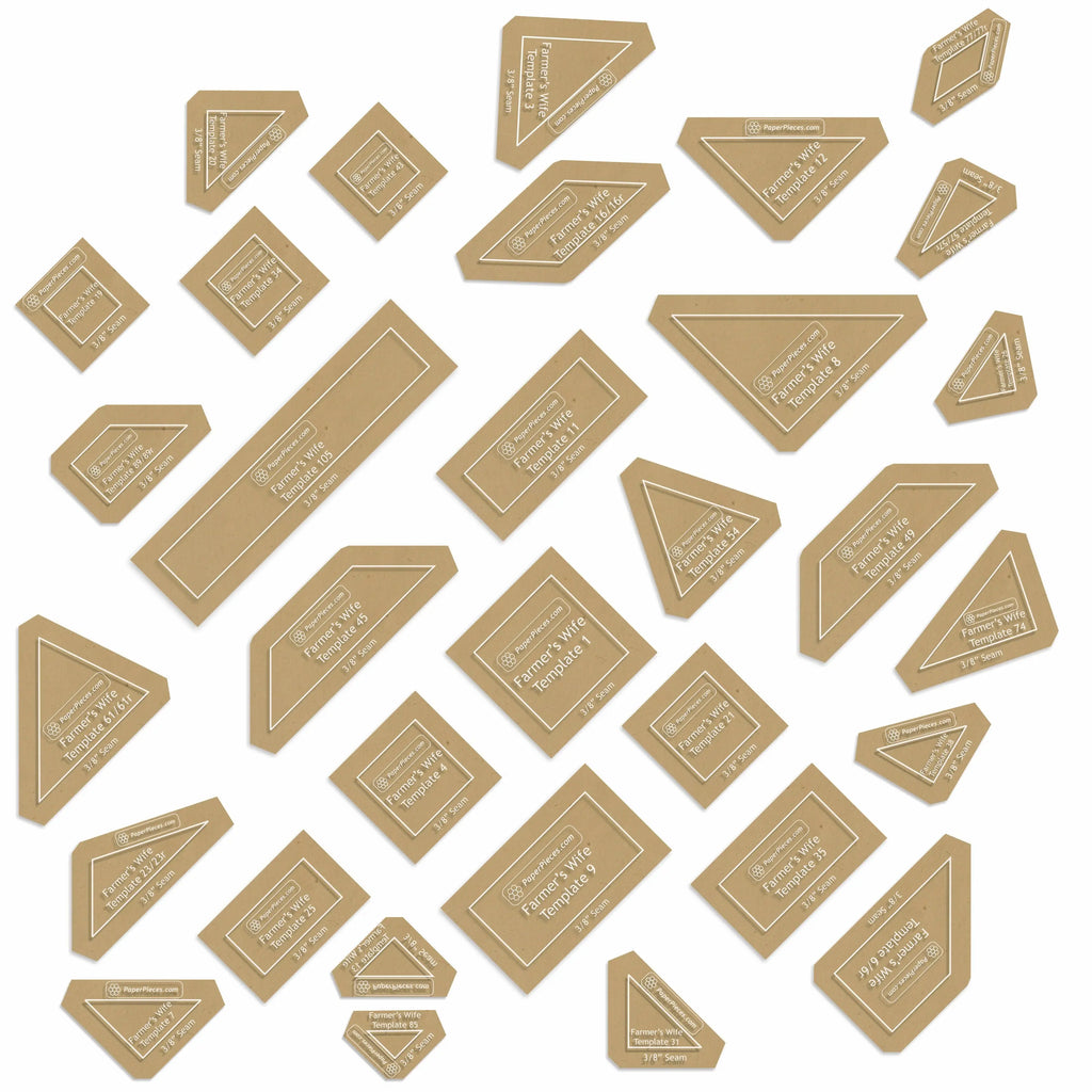 Acrylic Fabric Cutting Templates Farmers Wife with 3/8in Seam Allowance 32pc