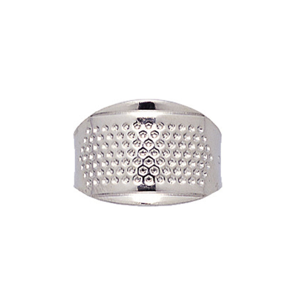 This metal thimble can be used for thick materials and can be adjusted for any finger size.