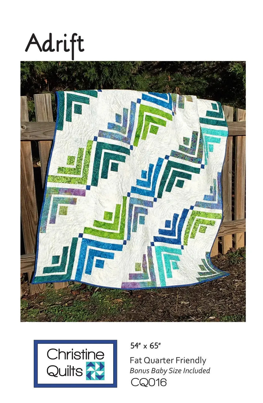 A fat quarter friendly 54in x 65in Throw size quilt featuring Creative Grids 10" Log Cabin Duo ruler. Creative placement of background pieces make the logs appear to be floating! Bonus Baby size, 32in x 43in, included.