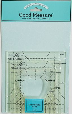 Amanda Murphy 1/4in (6mm) Every Petal Set 2 Every Petal set 2 (3 pcs) Long Arm templates from Amanda Murphy. These 3 ruler templates have a wide petal. Sizes: 2 1/2", 3 1/2" and 4 1/2" in height.