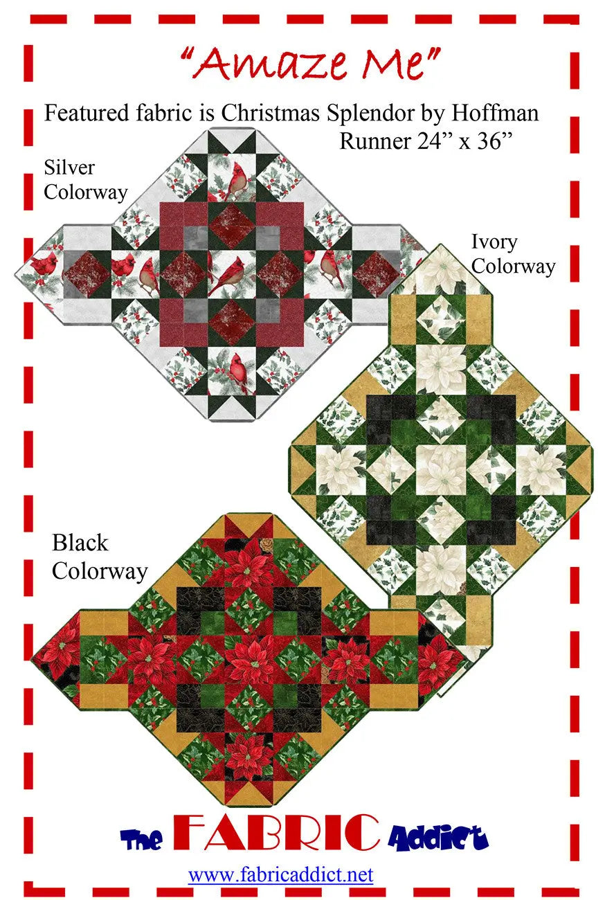 Amaze Me quilted runner pattern. Unique shaped table runner for coffee table or small dining table.