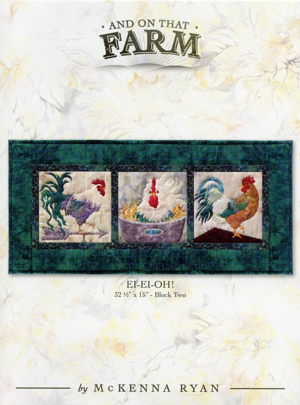 This is Block 2 of the And on that Farm Quilt. This block features three chickens and measures 32 1/2" x 15" when completed.
