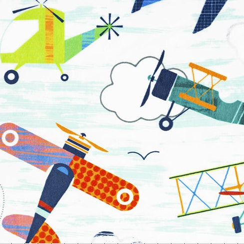 Do you know a little one who's always looking up at the skies? Airplanes are especially popular with kids (and big kids, aka adults), and this digitally-printed Fly With Me Cuddle® minky plush fabric will be a favorite of the aviation fans in your life. It features a variety of old-school and modern airplanes (and a helicopter or two) illustrated in geometric shapes to not only help your little point out airplanes, but learn their shapes, too. This airplane-themed digital print would look especially good as pillow cases or minky fabric throw blankets that can be brought onboard your next flight.