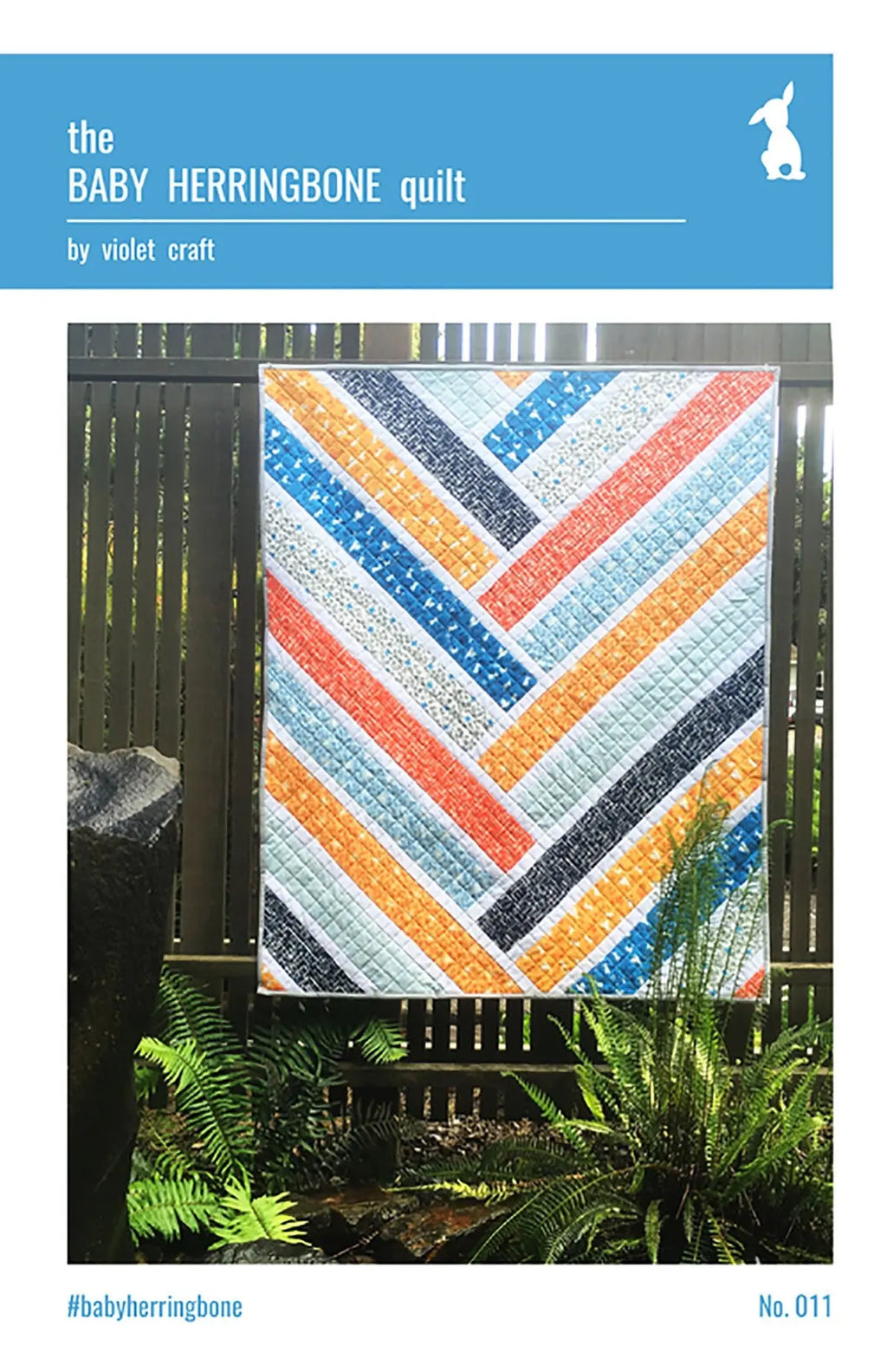 The Baby Herringbone quilt (40"x50") is a perfect lap quilt or generous baby quilt. Pieced from full width of fabric (WOF) strips, there are no “Y” seams in the simple construction which provides a perfect layout to show off favorite fabric prints. A quick quilt that looks more complicated than it is.