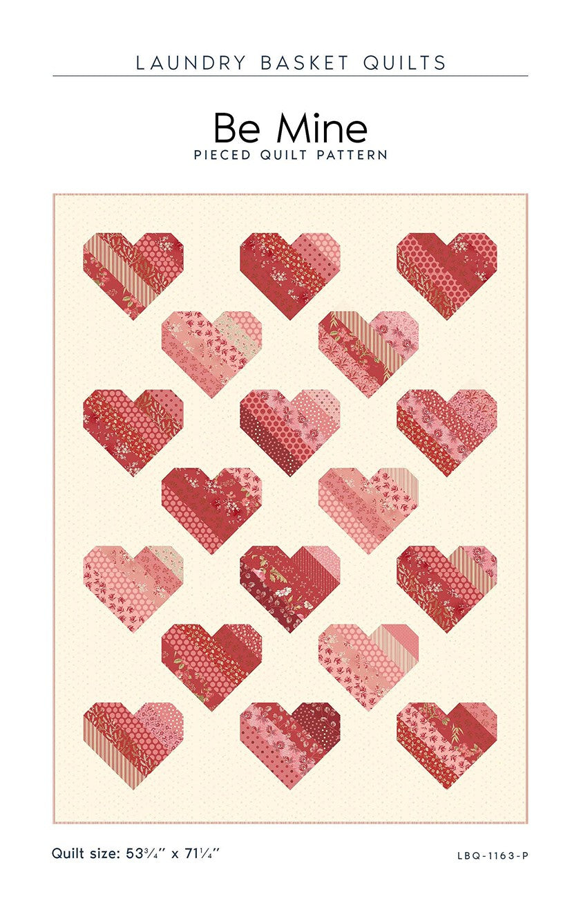 Be Mine Pieced Laundry Basket Quilts Pattern using Laundry Basket Quilts "Little Sweetheart" fabric collection. Quilt Size is 53-3/4in x 71-1/4in