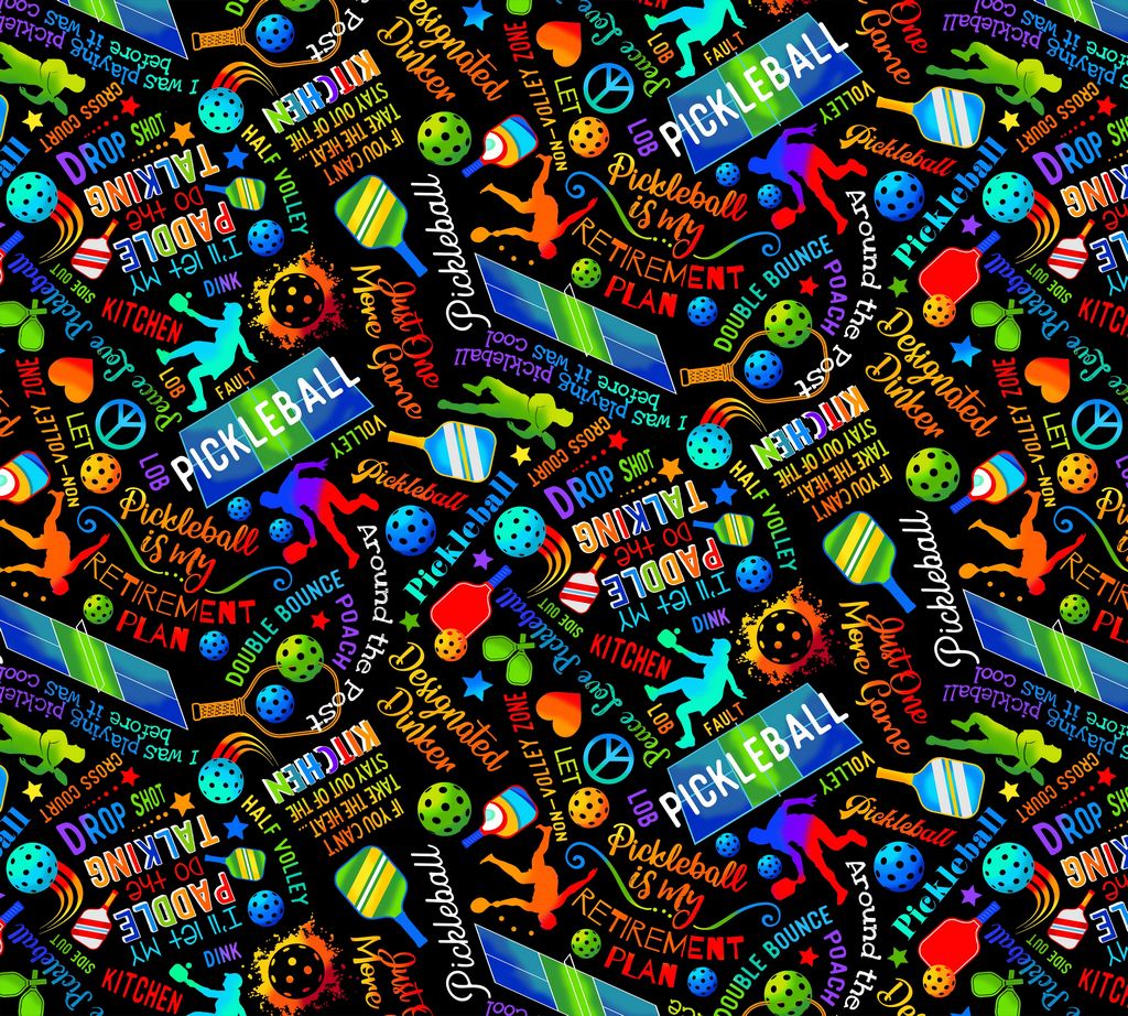 Black Pickleball Fitness Fanatic 44"/45" Fabric Per Yard