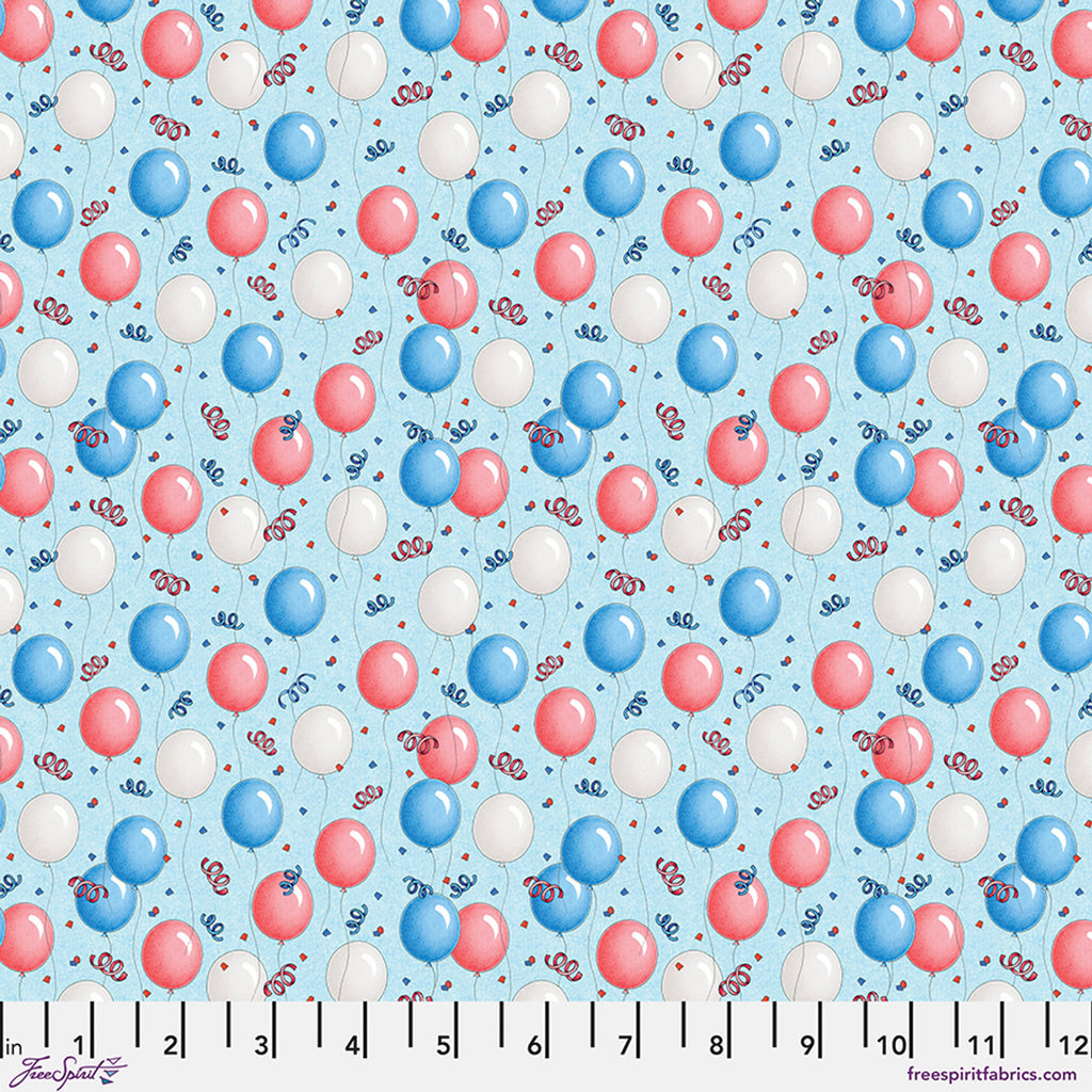 Blue Americas Birthday Balloons Cotton 44"/45" Fabric Per Yard