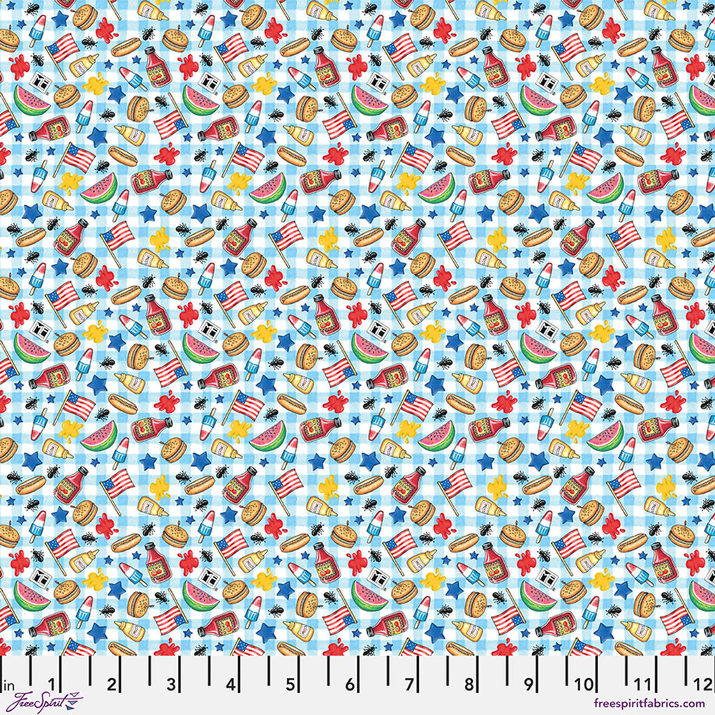 Blue Americas Birthday Cookout Cotton 44"/45" Fabric Per Yard