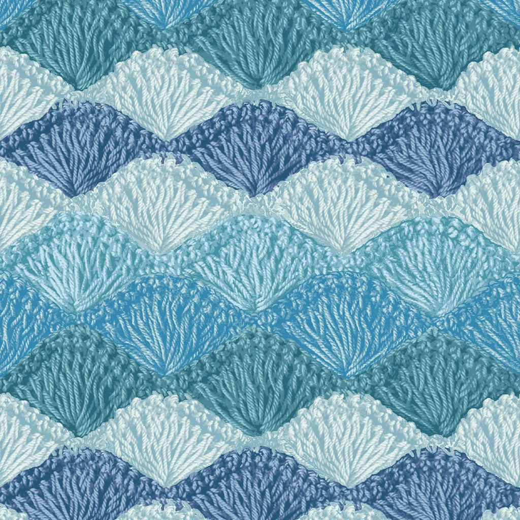 Blue Crochet Clam Shell Stitch Cotton Wideback Fabric Per Yard: