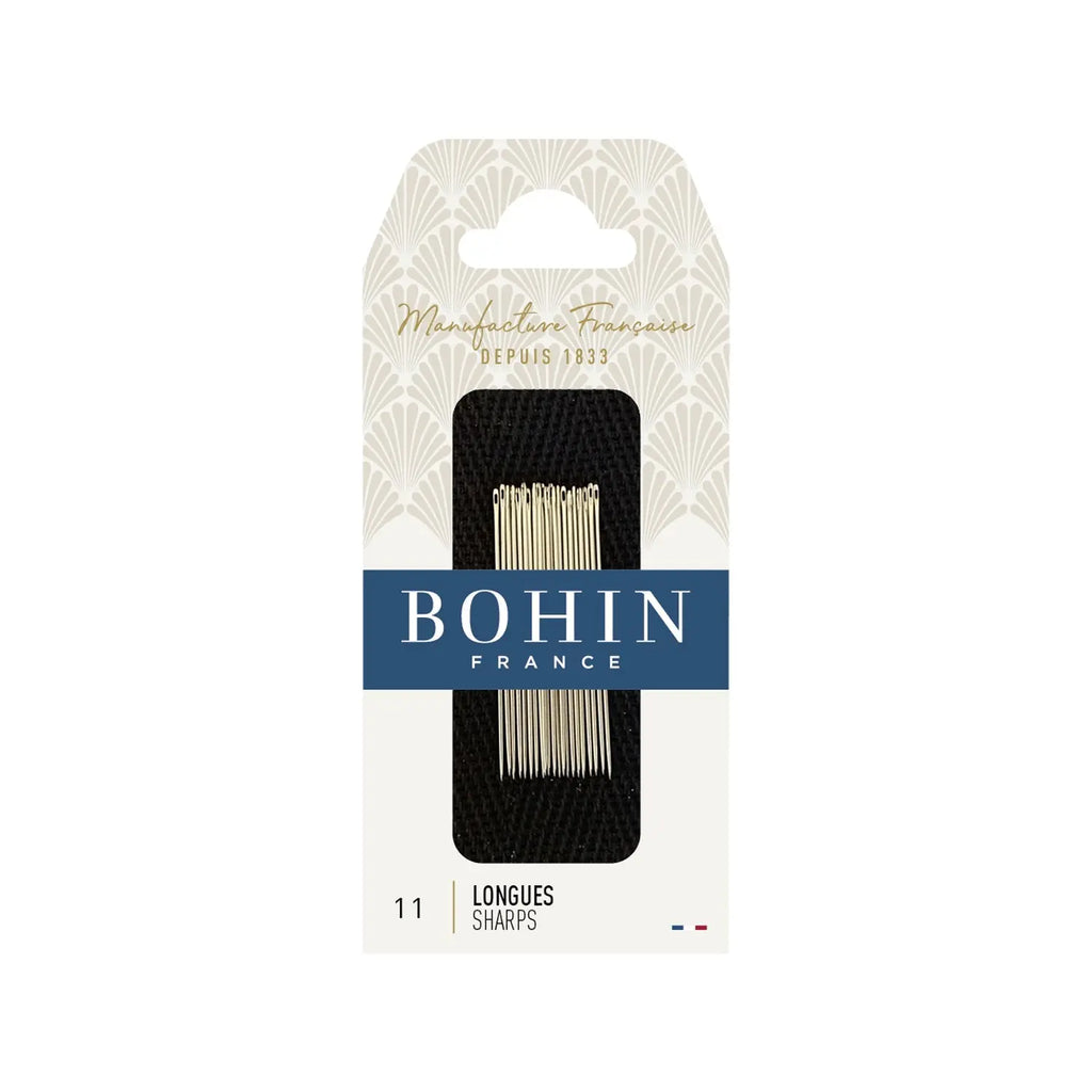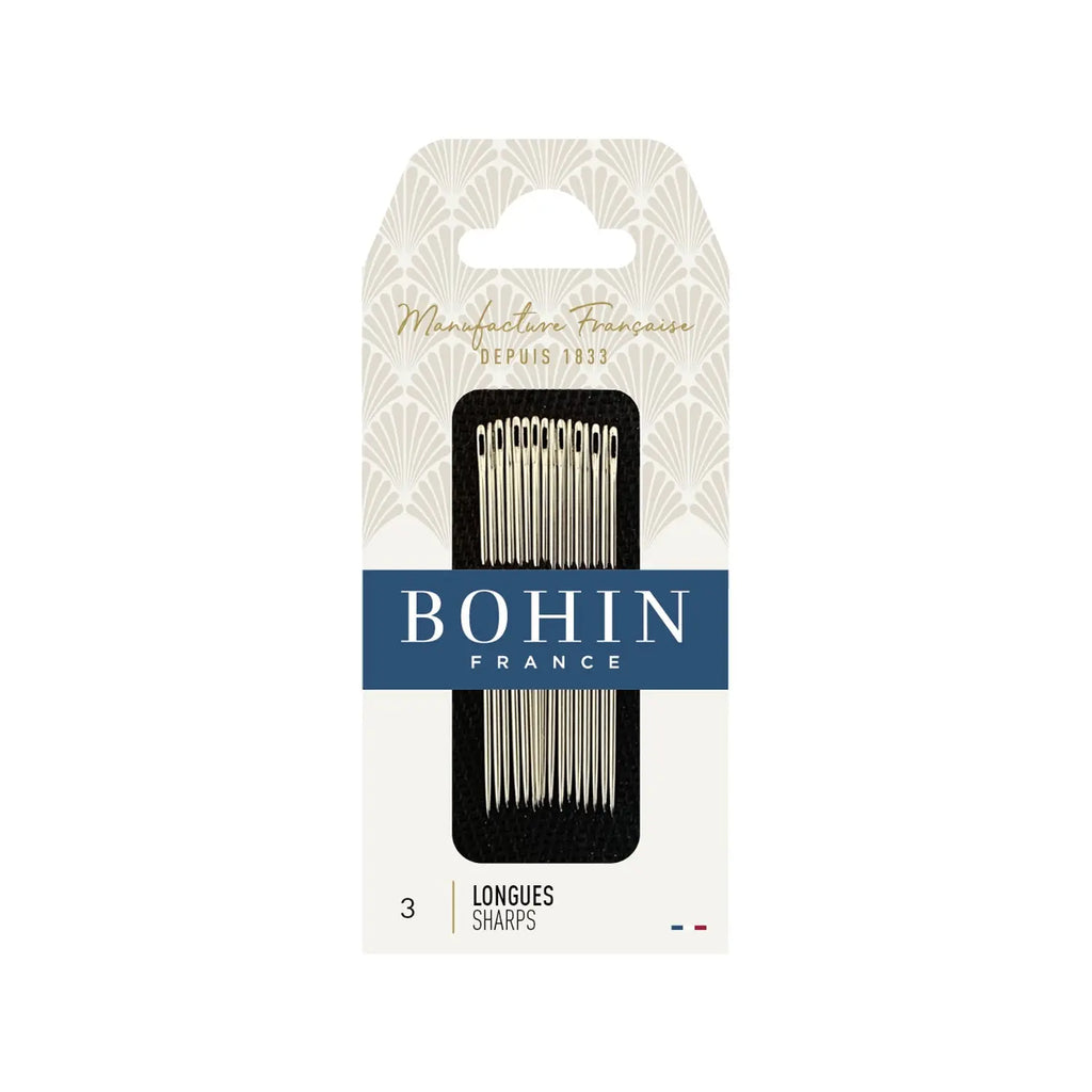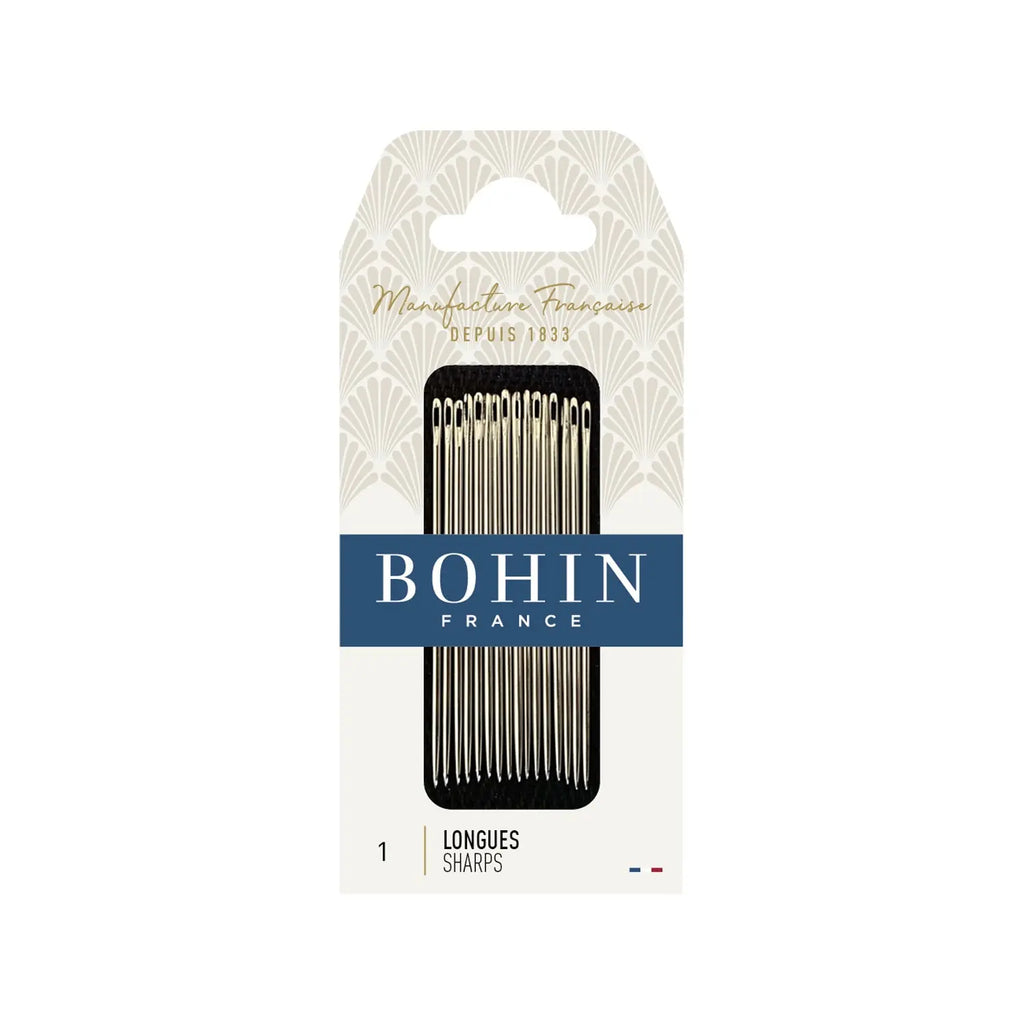 Ideal for medium and heavy fabrics such as velvet, wool, brocade, woollen cloth or denim jeans. Sharps needles are ideal for everyday sewing work. The perfectly pointed tip will glide ideally into all types of fabrics. Made in France in Bohin factory, from nickel-plated steel, our needles go through 27 manufacturing stages, which guarantees an incomparable slide and an irreproachable tip.