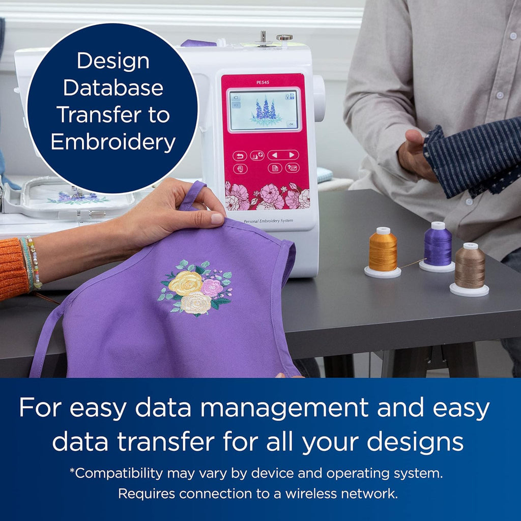 Wireless LAN is a game-changer for crafters. With wireless connectivity, you can seamlessly transfer designs from your computer or mobile device directly to your machine, eliminating the hassle of cables and memory cards. This feature allows you to access a vast library of embroidery patterns through Brother's Artspira app, expanding your creative possibilities without limits. Whether embellishing a quilt block or creating a custom quilt label, the PE545’s Wireless LAN empowers quilters to effortlessly elevate their projects to the next level with professional-grade embroidery.