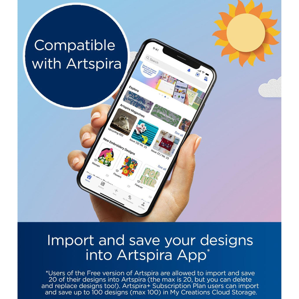 Artspira, Brother’s cutting-edge design and editing app, is the perfect creative partner for the Brother PE545 Embroidery Machine. Designed to elevate your embroidery projects, Artspira provides a user-friendly platform that allows you to create, edit, and customize designs directly from your mobile device. The app connects seamlessly with the Brother PE545, enabling wireless transfer of your designs straight to the machine. Features like design previews and easy adjustments help you refine your creations before stitching, ensuring perfect results every time. Whether you’re a seasoned embroiderer or a beginner, Artspira offers the flexibility and functionality to bring your embroidery ideas to life with ease and precision.