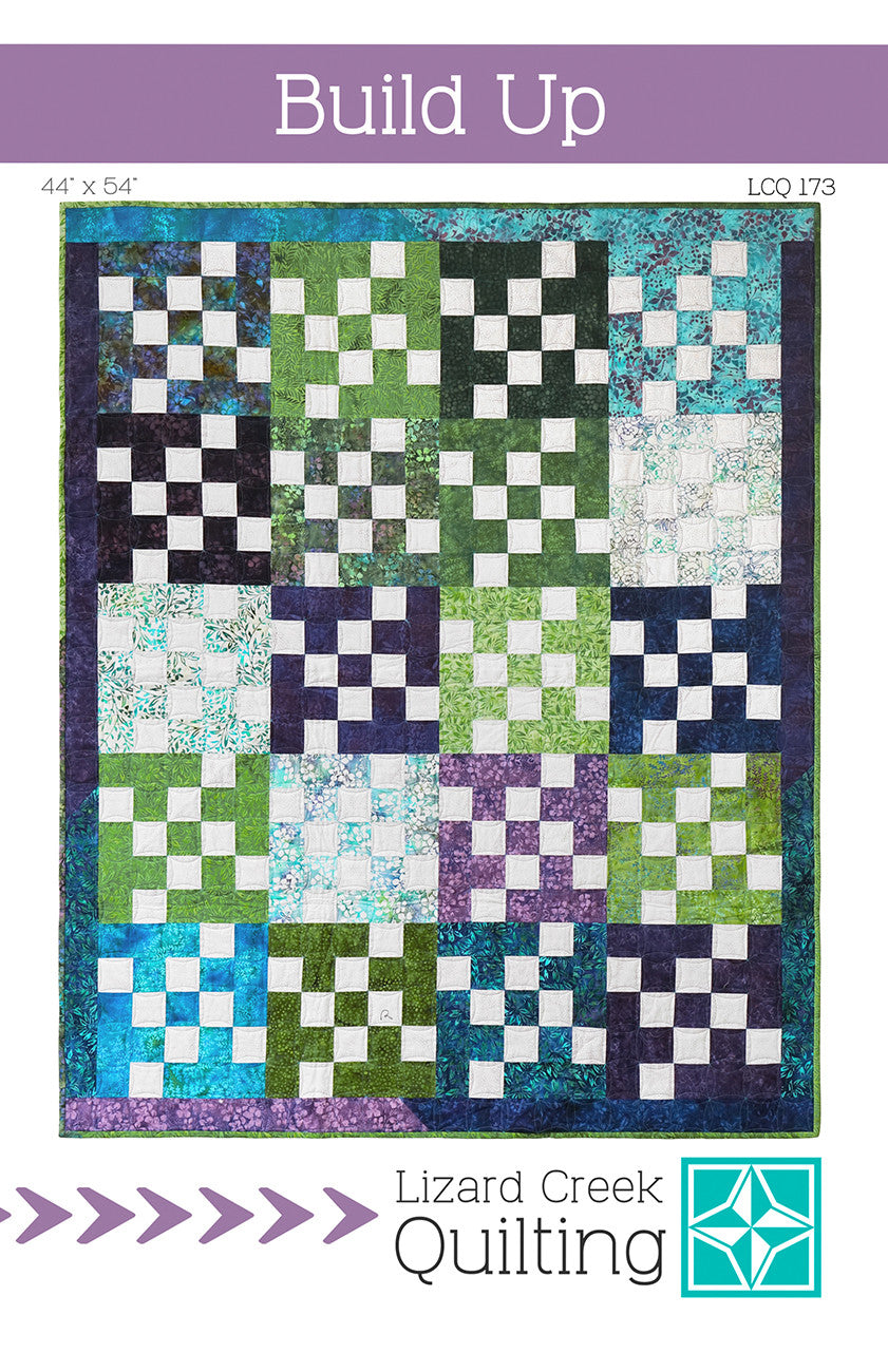 Build Up is a beginner friendly 44" x 54" 2-1/2" strip roll quilt. Customer can build confidence by learning partial seam construction. One strip roll will make the blocks, border and binding--just a bit of background yardage needed to complete quilt top. Get your customers to use up those horded strip rolls and Build Up room to buy more!!
