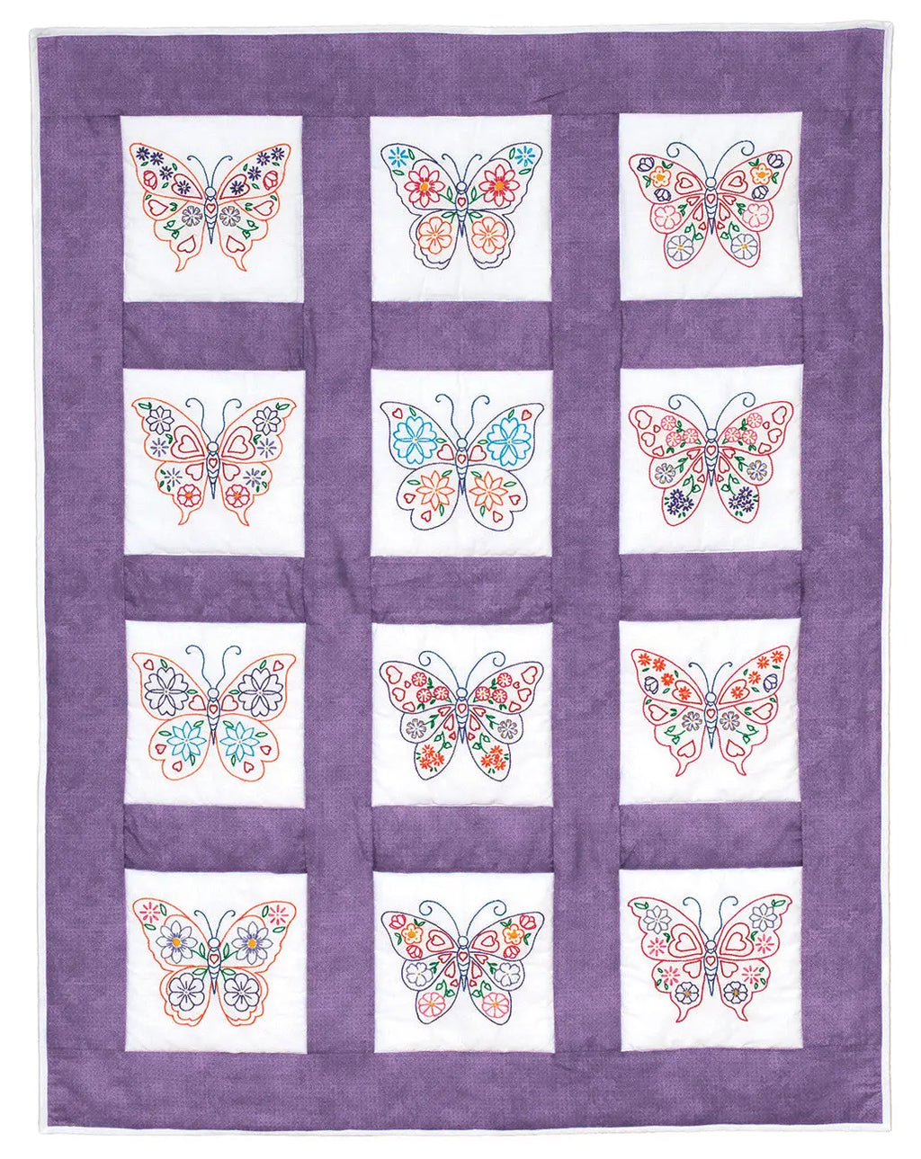 Cross Stitch and Embroidery design, without quilting marks. Each package contains one wall quilt of poly/cotton broadcloth. Approximate finished size: 36in x 36in. Additional materials needed to complete: Backing, batting, needle, and floss. Floss requirements included.