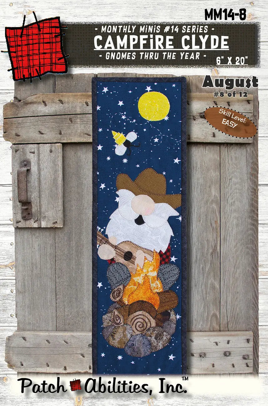 August in our BOM, Monthly Minis 14 series. He loves to camp, take long walks and pick cowboy songs fireside on his guitar and he's single, ladies. Super beginner friendly pattern uses traditional raw edge applique with fusible web. Project finished size: 6 x 20 wall hanging Pattern includes: • Step-by-step instructions, beginner friendly, leaving no step unexplained • Templates you’ll love – bold, labeled, ready and easy to trace anywhere • Project layout guide – in color, numbered shapes aid with placement • Binding instructions for creating neat proper binding • Great Basic Tips for the basic skills required to make the project • Hand embroidery stitch instructions with diagrams • Templates for personal cutting machines – non labeled, non reversed, ready to scan and cut When you purchase a Patch Abilities Inc pattern, you receive everything IN the physical pattern that’s needed to make the project. Printed step-by-step instructions from start to finish and binding. No guessing. Every template is already reversed, at actual size, ready to be traced. Our templates are BOLD lines so you don’t even need a window or lightbox to trace and each shape is labeled with name and a number that corresponds to the full color layout guide for help in shape placement.