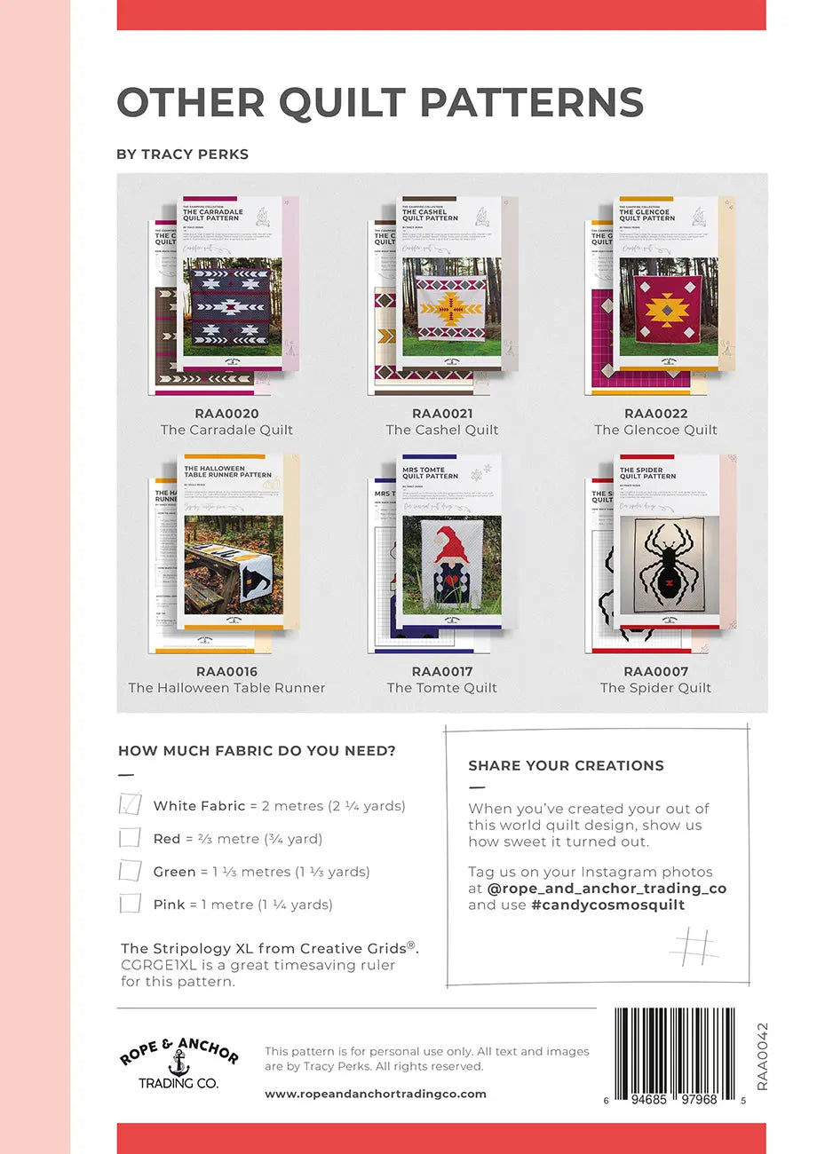 Candy Cosmos: The Candy Cosmos quilt pattern measures 60” x 60”, this pattern is perfect for beginners.