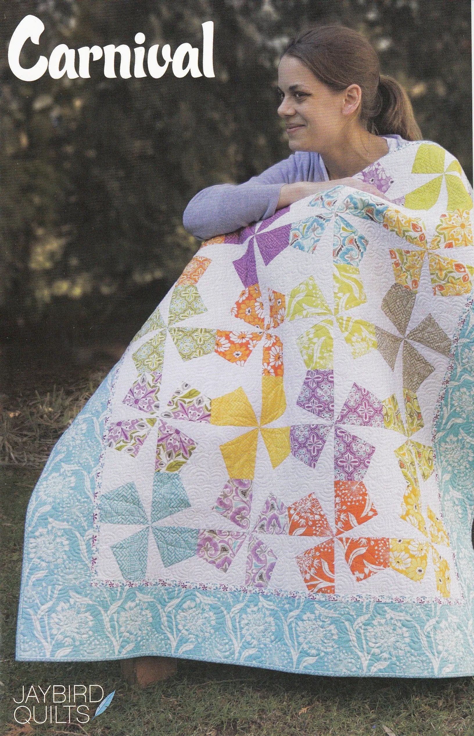 Discover the joy of quilting with this vibrant Carnival quilt pattern, perfect for adding a playful touch to any room. This quilt features a dynamic array of colorful pinwheels in shades of purple, orange, yellow, and green, set against a crisp white background with a light blue border adorned with a delicate floral print. Ideal for both B2B and B2C customers, this quilt pattern measures 43 inches by 51 inches and utilizes the Creative Grids Lazy Angle Ruler CGR3754 for precision cutting. Whether you're a seasoned quilter or a beginner, this pattern offers a delightful project that brings color and cheer to your home or business.