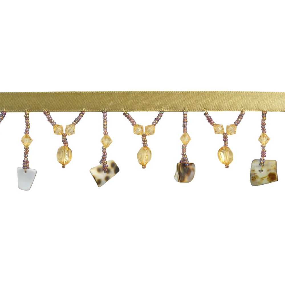 Charm Collection - 2" wide SHELL BEADED FRINGE (15 YDS) - BB-919-30 Honey Gold