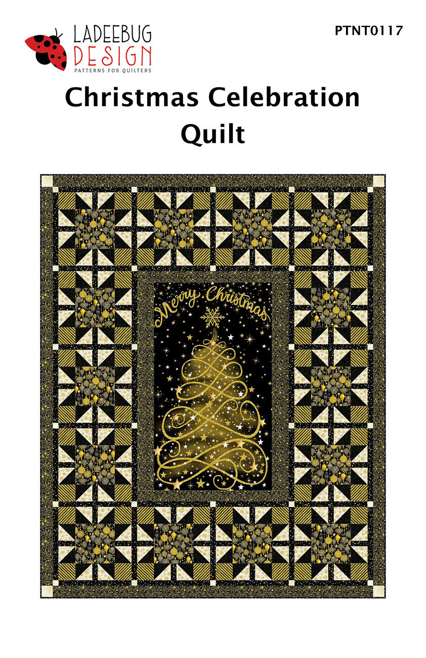 Christmas Celebration: Features Timeless Treasures' Merry Christmas collection. Finished size: 61" x 75". Beginner Friendly - Straight cuts and seams.The block design is based on a traditional sawtooth star block with some modifications. First, half-square-triangles are used instead of flying geese for easier piecing. Then, a small fabric strip is inserted between the 1/2-square-triangles to give a more modern feel.