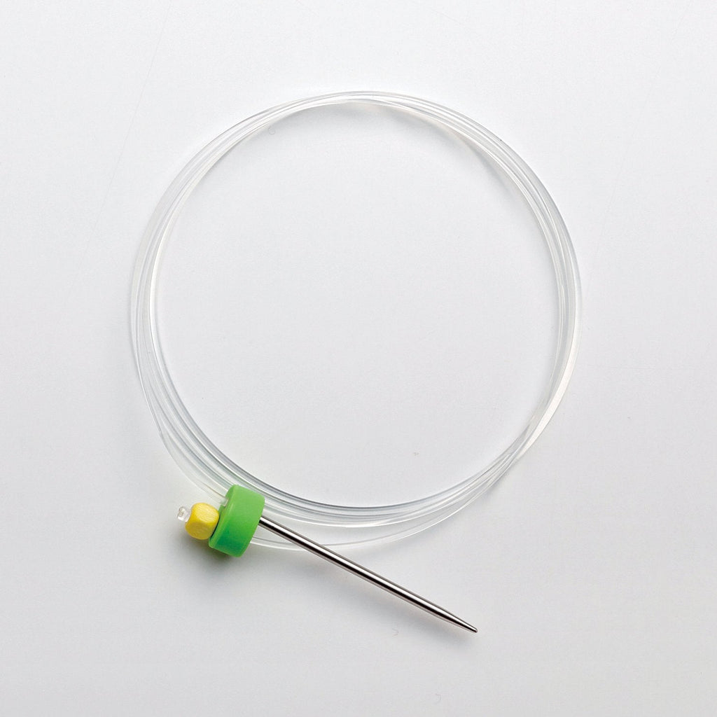 Stitch holder with soft, pliable cord is a convenient way to store your circular work. Keeps the shape without compromising the stitches. Length of cord is adjustable depending on the number of stitches to be held.