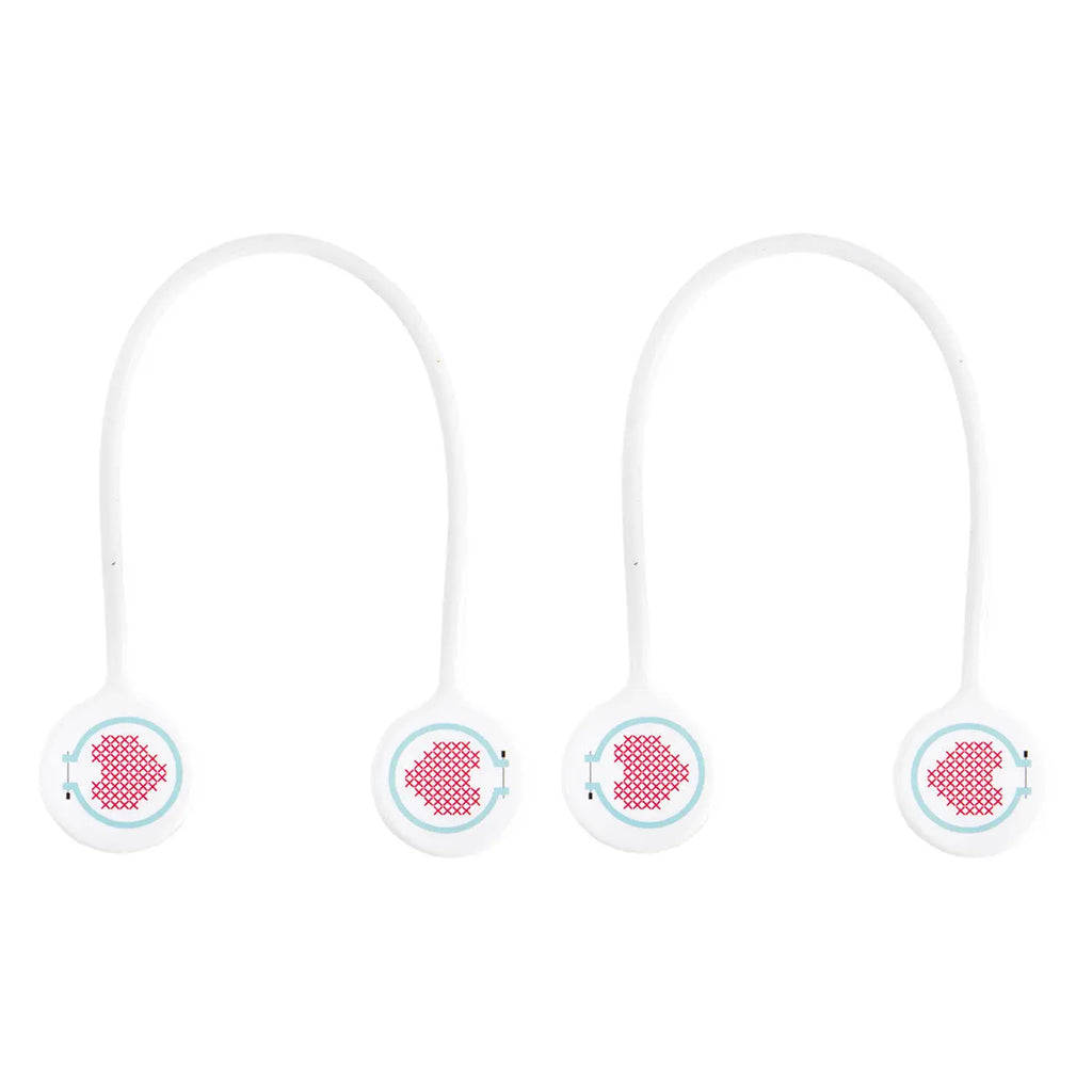 This set of two Clothbitties Cloth Keepers will help keep loose fabric tied up while doubling as a needle and scissor minder! These strong magnets are connected with a silicone tie to keep loose cloth under wraps as you stitch in hand or hoop. Embellished with a sweet, stitched heart, they will also keep WIPs rolled up to avoid excess creases and folds.