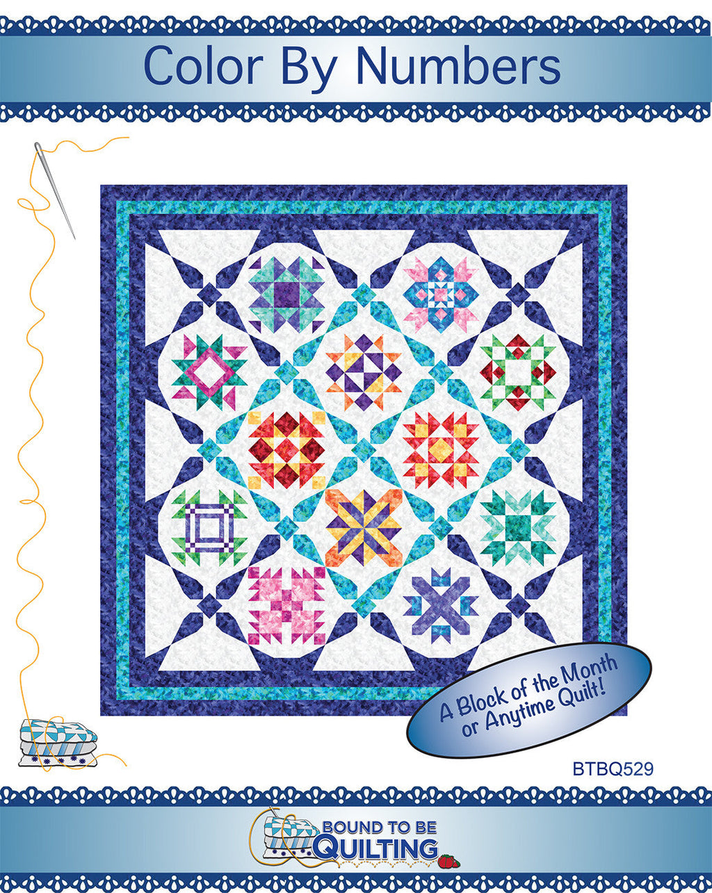 Twelve sample blocks and alternate chain blocks make this a 12 or 13 month Block of the Month program. We start with the easier blocks, then graduate to the couple of blocks with templates, and then template alternate blocks in the finishing. Our sample is made from the Fresh Blends collection from Benartex. A great, colorful pattern that uses light and dark tones from the rainbow. Finished size is 81" x 81", and skill level is intermediate.