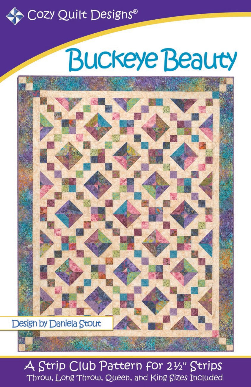 Buckeye Beauty - A Strip Club Pattern Designed for 2½" Strips. A classic beauty with a strip twist. You can create this time-tested design out of 2½" strips. With the tube technique, you even add a charming touch with pieced diamonds that makes the quilt a dazzler! You can make your work even easier by using the The Strip Tube RulerTM #CQD05001. The pattern includes instructions for: Throw 60in x 60in Long Throw 60in x 76in Queen 92in x 92in King 108in x 108in