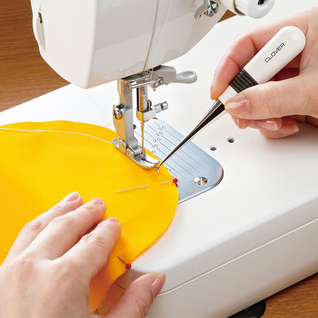 The ergonomic handle provides better grip and comfort for controlled results. The curved tip ensures beautiful curves on pockets and collars. The special tip also allows you to easily get under seams and stitches. When using the awl as a stiletto the curved tip also means higher visibility for every application.