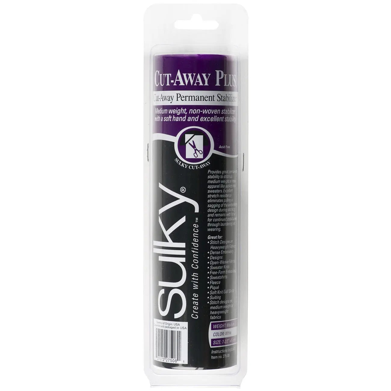 Cut Away Plus Midweight Stabilizer White 7 2/3in x 8yds: White - 7-2/3in x 8yds. Sulky Cut-Away Plus stabilizer is an acid free permanent, medium weight, non-woven stabilizer with a soft hand and excellent stability for knits and outerwear like jackets, sweaters and sweatshirts. We recommend it as a backing for dense designs, open-weave fabrics with a complex design and high-detail embroidery designs. It is permanent through washings, acting as permanent support for the thread