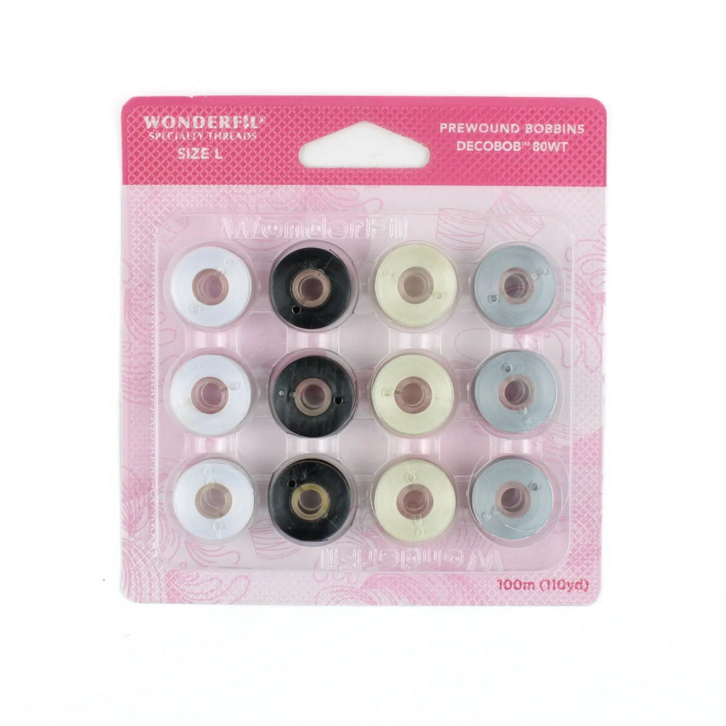 Basic packs include 12 pre-wound bobbins in 4 different basic colors: