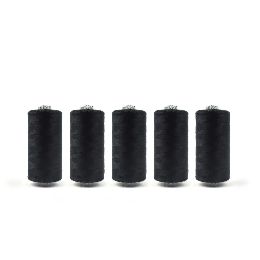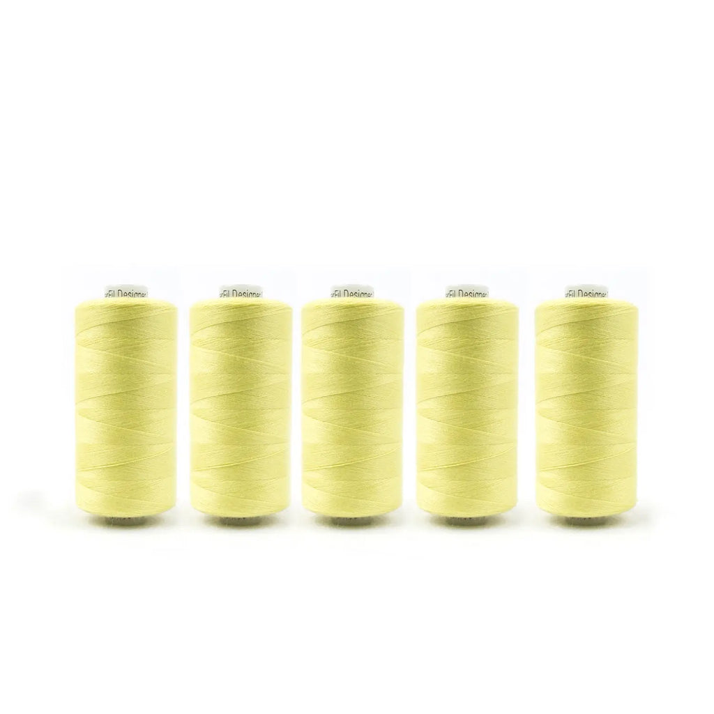 Each pack includes 5 spools at 1000m (1094yd) of Designer™️ 40wt general purpose polyester that delivers a maximum seam strength of 50lbs per inch. This premium thread is designed specifically for garment construction and professional dress making, as well as other all-purpose sewing needs.